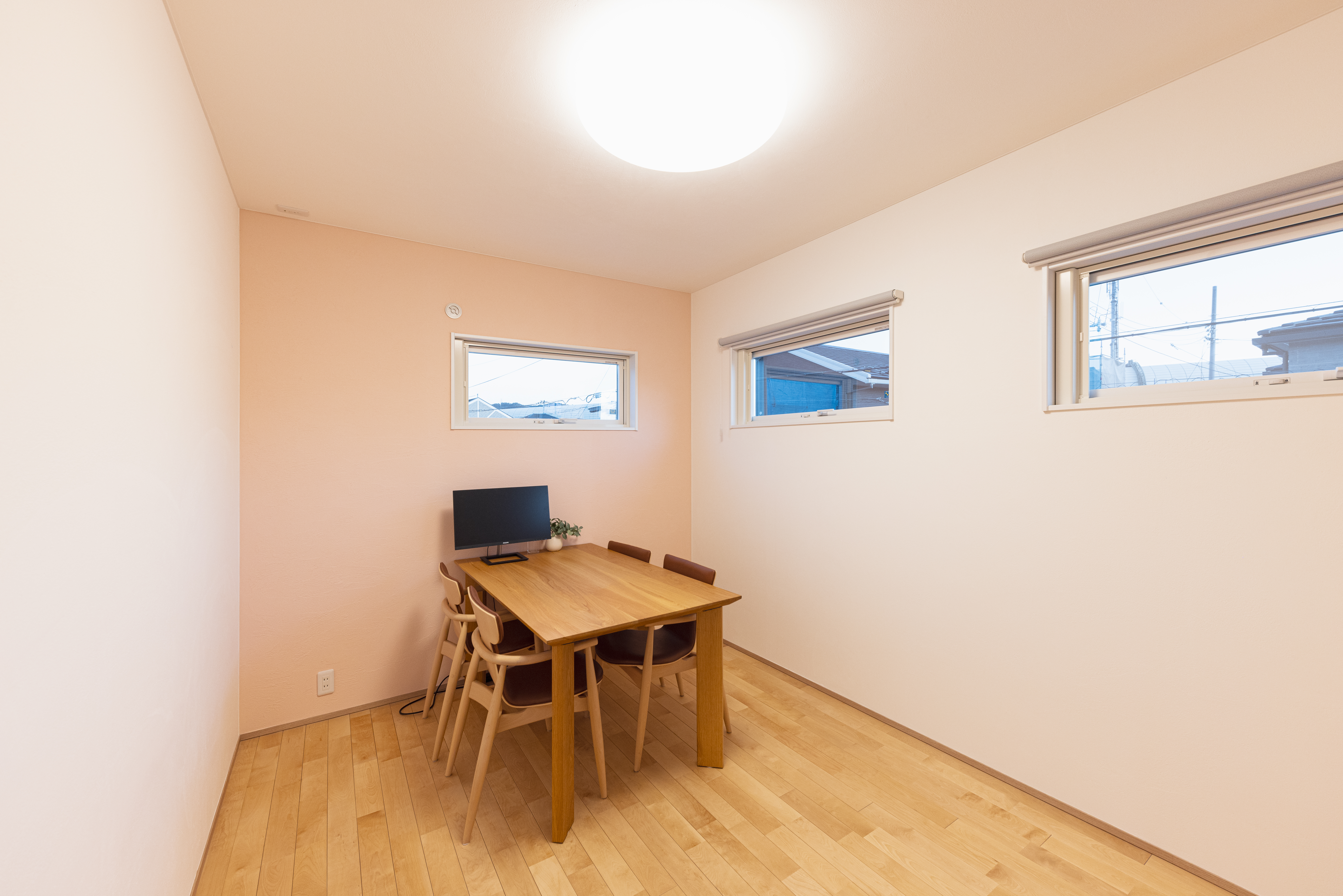 漆喰や無垢フローリング、セルロースファイバー断熱材を採用し、 化学物質を抑えた健康的な住環境を実現。 特にオリジナル漆喰「光漆喰」は、調湿・抗ウイルス性能があり、 空気をきれいに保ち、住む人の健康を守ります。